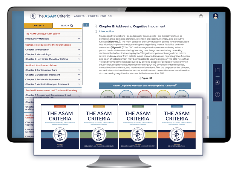 The new digital edition of The ASAM Criteria® gives you instant access to essential content with quick‑reference tools, intuitive bookmarking, customizable folders, and powerful search functionality. Copy‑and‑paste features help you streamline documentation, and your purchase includes all current and future volumes for one price—ensuring you always have the most up‑to‑date guidance.